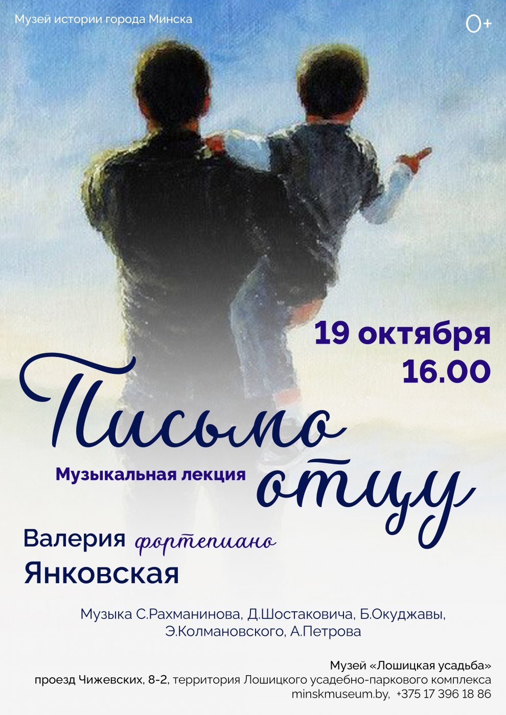 19 октября 2025 года в 16.00 в музее «Лошицкая усадьба», филиале Музея истории города Минска, состоится лекция-концерт «Письмо отцу», посвященная празднику День отца!