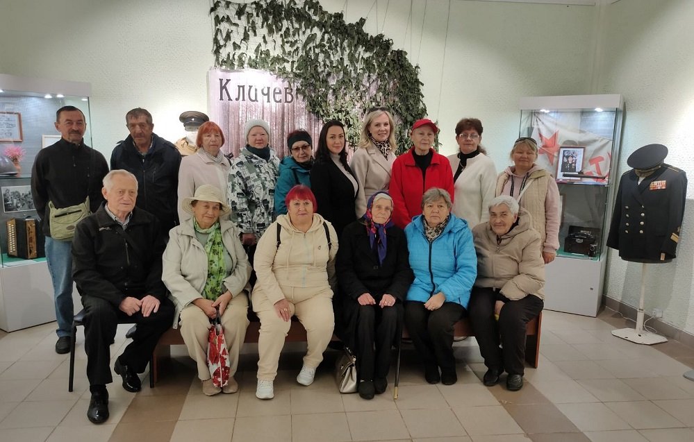 Коллектив учреждения культуры «Кличевский краеведческий музей» в очередной раз рады принимать у себя в гостях посетителей отделения социальной реабилитации и абилитации инвалидов и дневного пребывания для граждан пожилого возраста Кличевского РЦСОН на выставке «Незабытая доблесть».